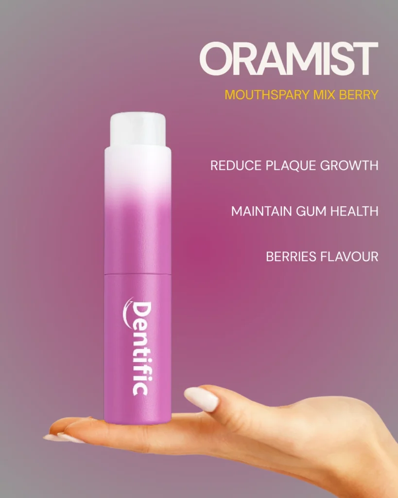 Penerangan Ringkas: OraMist ialah semburan mulut berperisa beri yang membantu menghilangkan bau mulut, mengekalkan kesegaran nafas dan kesihatan gusi sepanjang hari. Diformulasi dengan Xylitol, Multibiome, dan Mix Berry Extract yang berfungsi menyeimbangkan bakteria baik dalam mulut serta melindungi gigi daripada plak dan kerosakan.